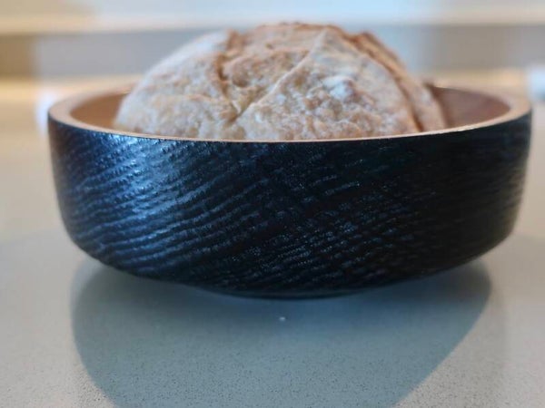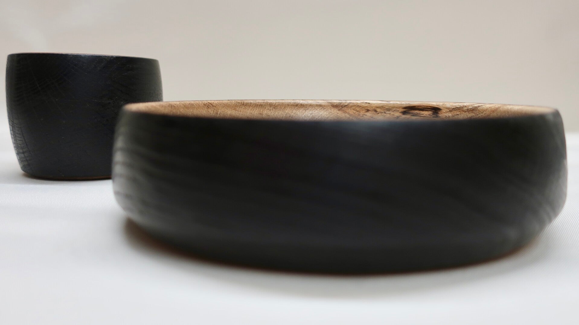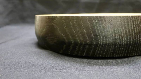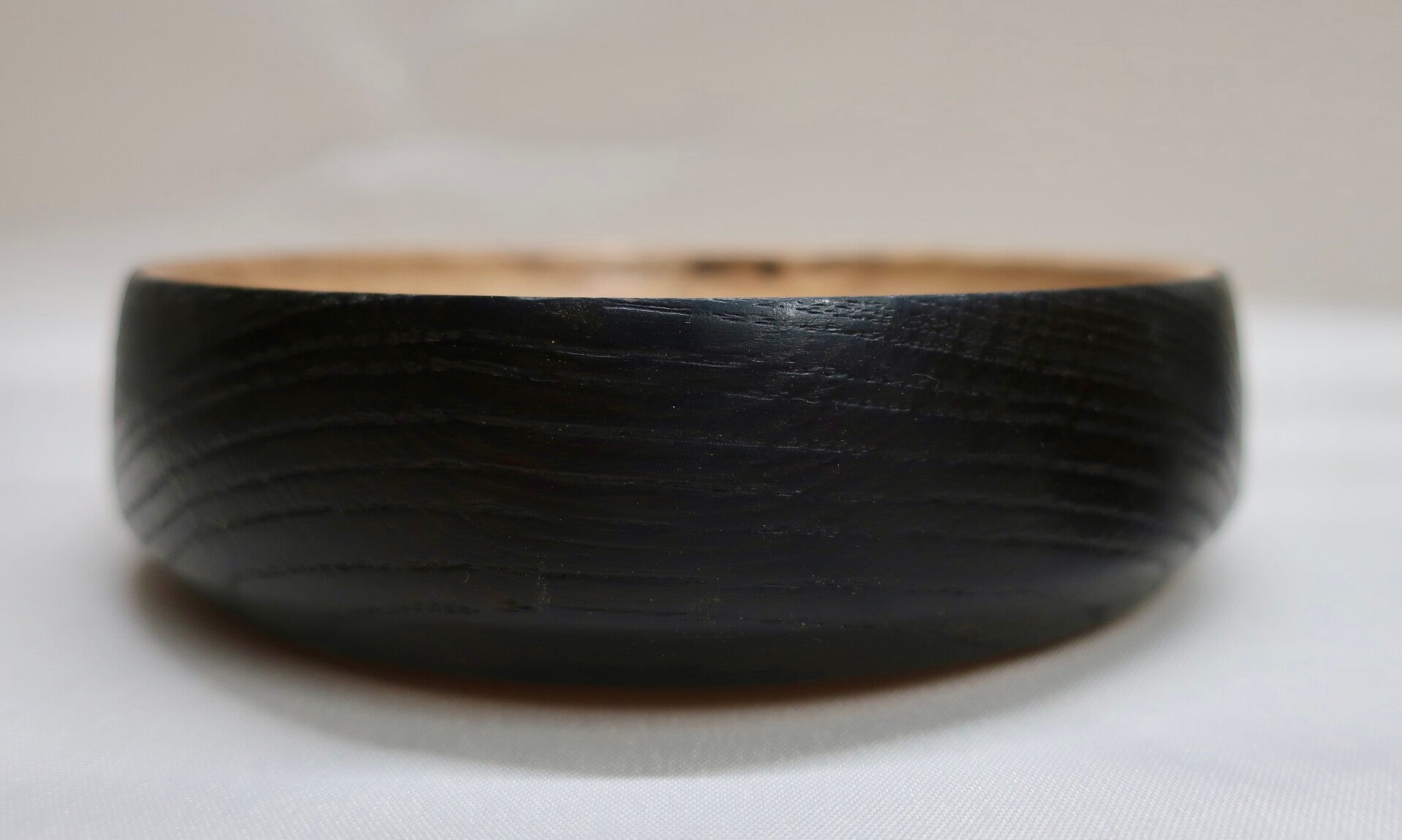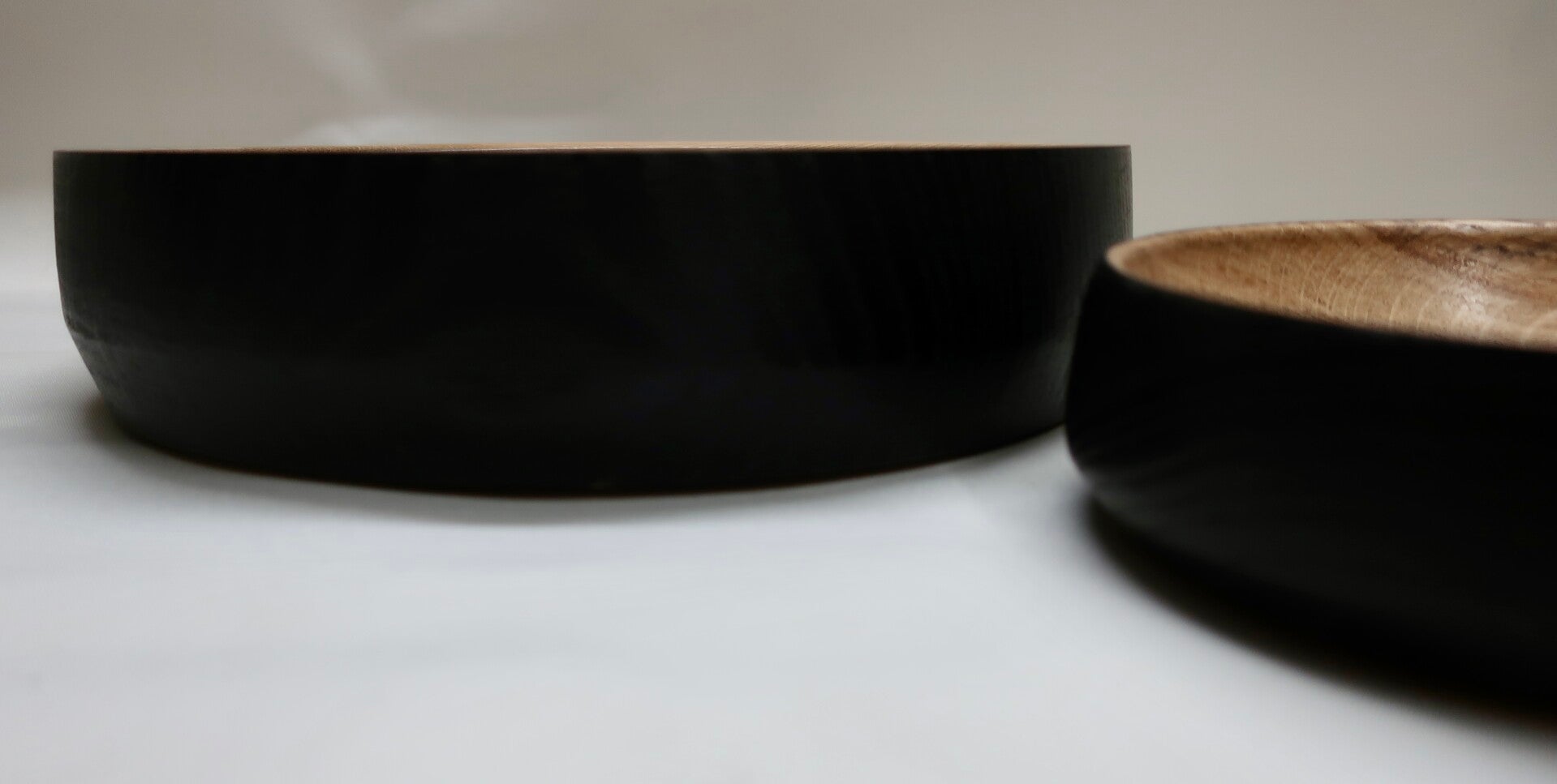 Wooden plate. Shou sugi ban outside, natural oak inside.